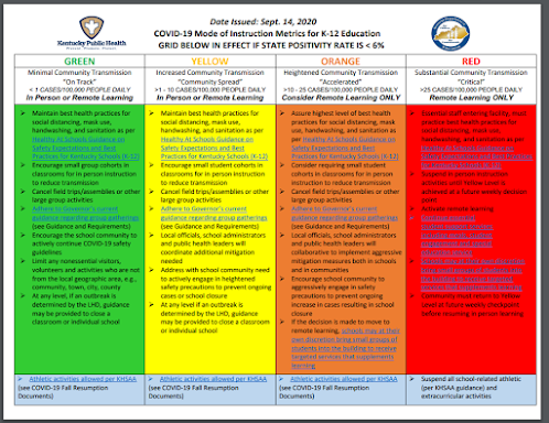 “Let me be clear that there is not going to be an overall recommendation coming from me or my office, post-September 28th," Beshear said at his daily briefing. “What’s going to be provided is the information to make a week-by-week decision in our various school districts and counties based on prevalence and what public health and experts believe is the right course based on that prevalence.”